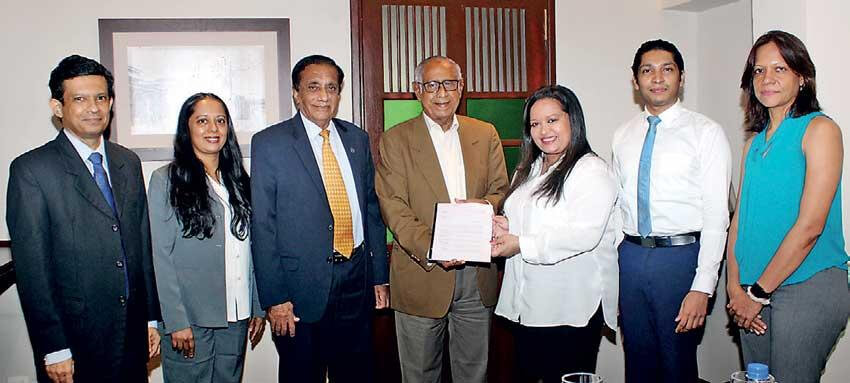 (L-R) Samantha Abeywickrama, Consultant Projects, COSMI, Nilu Rajapakse, Secretary General, COSMI, Nawaz Rajabdeen, President, COSMI, Deshabandu Macky Hashim, Chairman, COSMI Governing Council, Sarrah Sammoon, Country Representative for CIPE in Sri Lanka, Navvid Mushin, Assistant Manager, Verité Research and Paramjit Kaur.